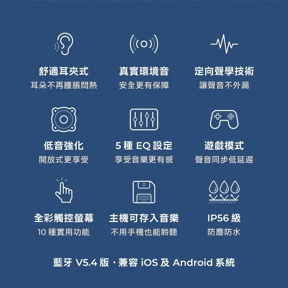 👂 耳夾式設計:開放式配戴,舒適不壓迫耳道